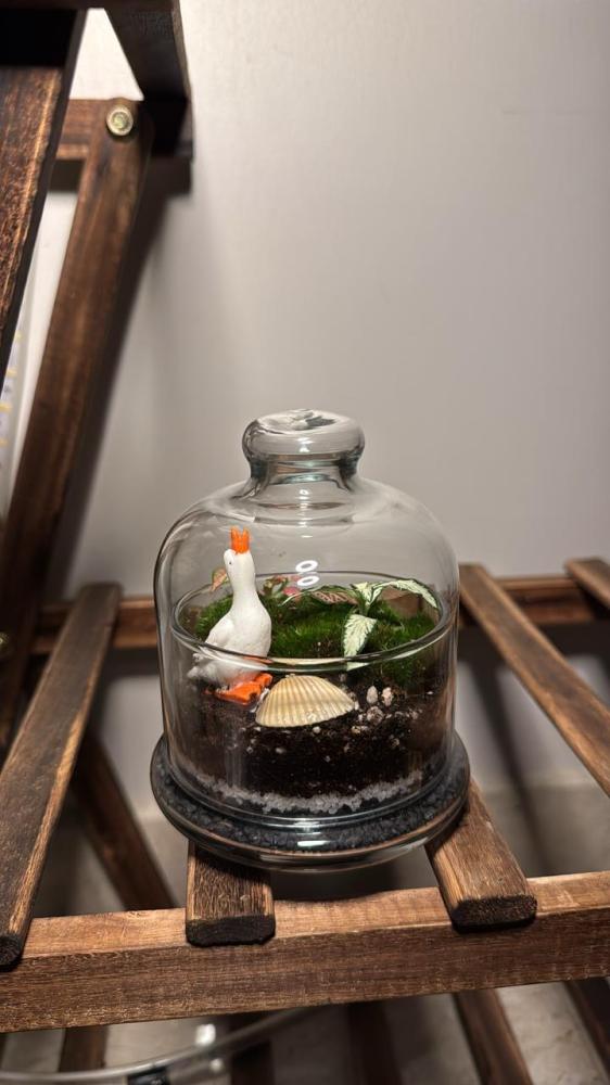 تيراريوم زجاجي مغلق بتصميم أنيق ولمسة طبيعية ساحرة، يجمع بين النباتات الحية والديكور المصغر، مما يجعله إضافة مثالية لديكور أي مساحة داخلية.